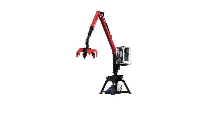 На манипулятор установлена подъемная кабина для комфортной работы в холод и непогоду, управление манипулятором осуществляется рычагами и педалями (механическое управление). Вылет манипулятора 8,6 метров, два телескопических удлинителя, укомплектован лучшим российским грейфером для металлолома RG-25 производства ПАЛФИНГЕР. Данный манипулятор будет выполнять задачи по сортировке металлолома и работе в паре с пакетировочным прессом. Привод гидроманипулятора - электродвигатель 30 кВт, что значительно снижает затраты на владение. Стационарный манипулятор позволяет высвободить более тяжелую перевалочную или мобильную технику от задач, требующих постоянной загрузки сырья в оборудование небольшой и средней производительности.